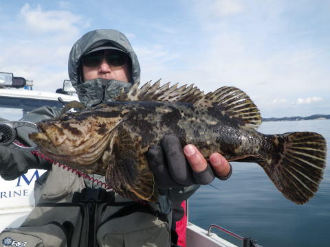 ロック船に乗り松島沖で無事にベッコウゾイ42p、1.2kgを釣って