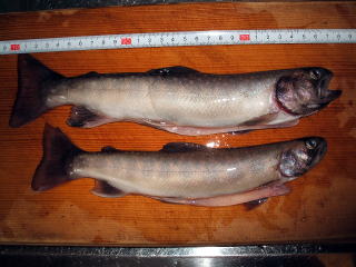 @イワナ C釣れた場所 遠野 ○釣り人 盛岡市 こたろさん ヒラメオンリーより きれいな魚体のイワナですね。このぐらいのサイズになると渓流竿も胴から曲がるほど引きが良いんですよね。 |