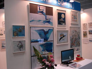 ボートクラブの表紙を書いているTadamiさんのイラストが展示してました。