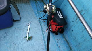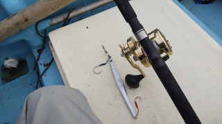 まずは300gのメタルジグと自分で作ったオリジナルのタコベイト仕掛けでジギングをします。