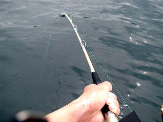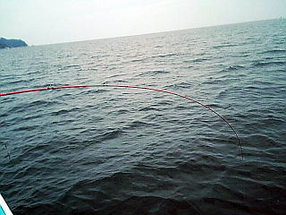 バスロッドでやっていたのでロッドの曲がること曲がること。青物の引きを楽しんでいました。
