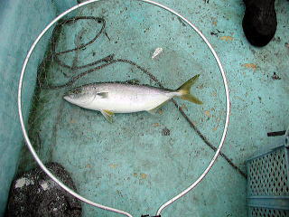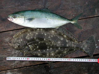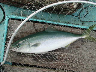 兄のロッドですが、このときはショッコ(カンパチの幼魚)が釣れました。 |