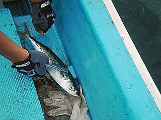 釣れるのは、兄ばかりで、それもサバばかり・・・船の周辺をナブラが立ちます。