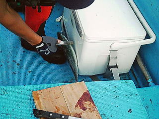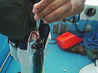 本日も親ハリを上あごから通して、大きめのイワシには孫ハリを付け、残りの小さいものしかなくなったときに孫ハリをはずして1本ハリで釣りをしました。