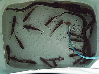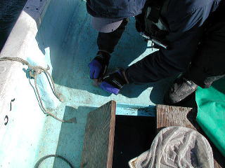 イケスからイワシをすくって針を掛けた後の濡れた手が冷たいですね。