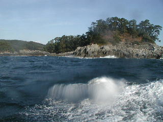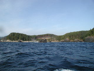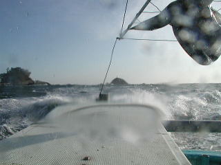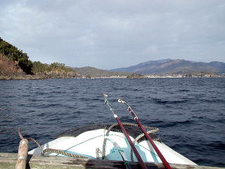 時化が続いたためポイント付近のイカダはウキ球が沈んで、見えにくい状態でした。