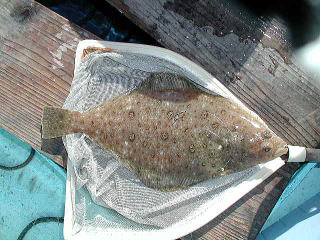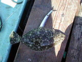 ヒラメ釣りを開始して30分ぐらいしたら、風が吹き出してきて波が立ってきたため、大事をとってこの辺で納竿としました。