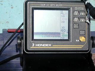 魚探をながめながら釣りをしていると画面上に点、点と埋まるときがあります。