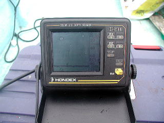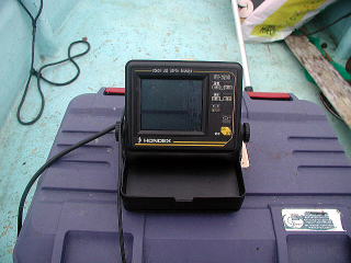 昨日の写真ですが、エレキモーターと魚探の振動子をこのように設置して釣りをしています。