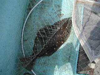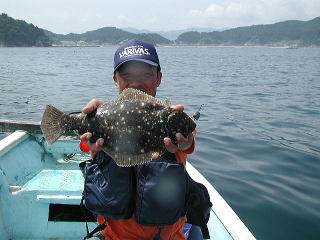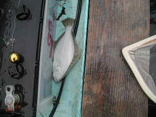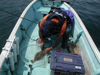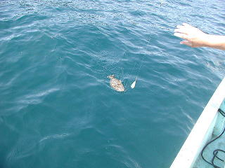 針をはずそうとしたら、小指がヒラメの歯に当りちょっと出血・・・。