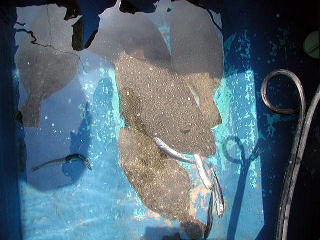 すでに何回か開口しているため浅いところにはなくて、5mぐらいの深いところばかりを獲って来ました。
