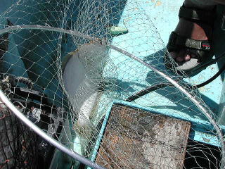 簡単そうなんですけど、5mも深くなると竿がまっすぐ入らず潮で流されて、なかなかうまく取れません。今日は10個取れたかどうか・・・。