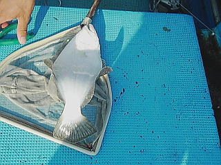 3枚目から写真を撮るヒマがないほど入れ食い状態で、最高が37cmを筆頭にリリースサイズを含めて22枚釣りました。 |
