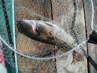 時間が迫ってきたので、そろそろ帰ろうかと思ってときに釣れたのは、40cmオーバーのアイナメでした。 |