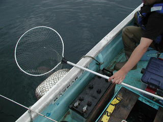 今日のポイントは、大きい船だと難しいイカダがあるポイントなのでエレキモーターが扱える小さい船が有利です・・・でも、本当は揺れの少ない大きめの船が欲しいけど。