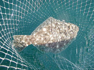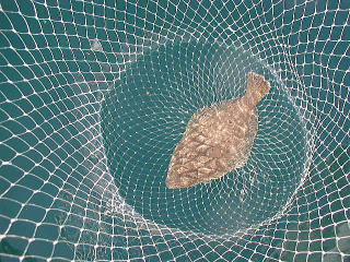 ばれないようにゆっくり上げてくると見えてきたのは30cmぐらいのヒラメでした。