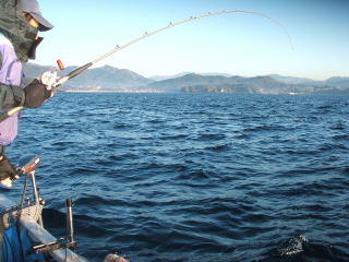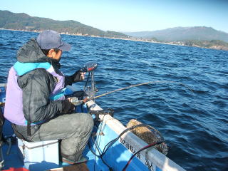 少し沖側に移動して水深38m付近で、待望のアタリです。