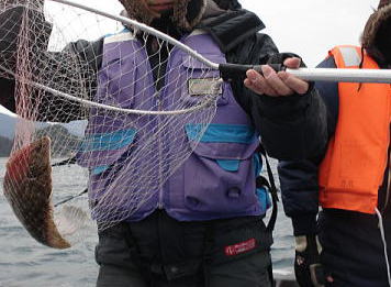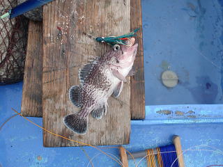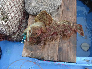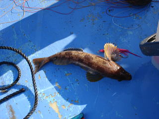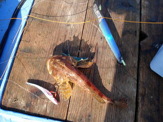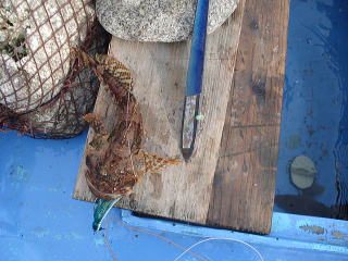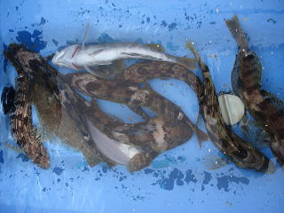 重みも十分。タラではないと思うが、巻き上げてくると大きな口をした魚が・・・一瞬タラと思ったら、スタイルの良いカジカでした。