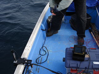 午前10時頃になると天気が良くなり波も穏やかになってきたので、底荒れの心配が薄い水深70m付近まで移動してみました。