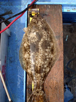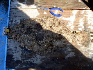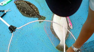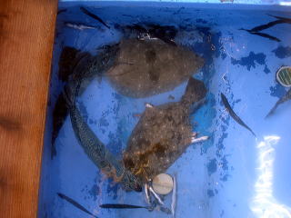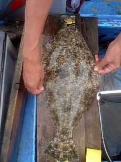 奥が兄のヒラメで38cm、手前が私のヒラメ42cmです。