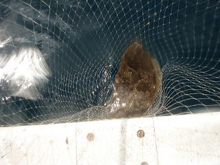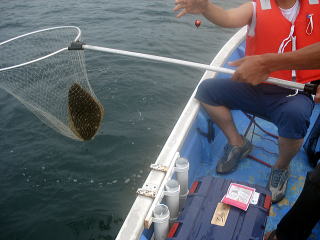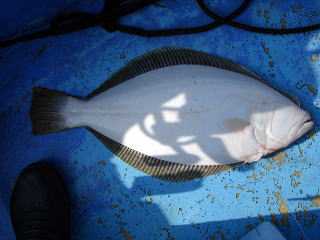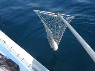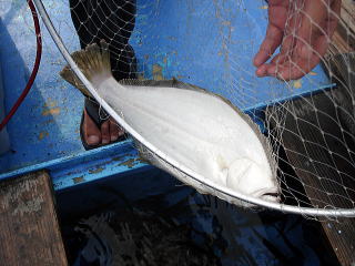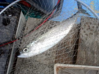 水面付近までギューン、ギューンという引きとドスッと乗ったアタリが、大きな声では言えませんが、ヒラメ釣りより面白いかも。f(^o^;)