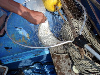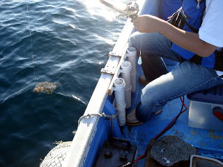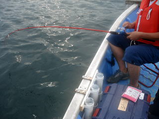 しゃくり方はヤリイカと違って、やや激しく1秒間に1mぐらいシャクっては、すぐ戻し、10回ぐらいシャクって同じタナで釣れなければ、1m巻き上げて、またシャクるという動作です。