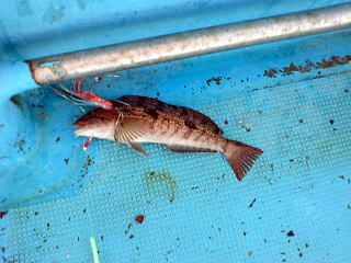 仕掛けはヨーヅリの目玉バケ80号で、自作のタコベイトしかけです。