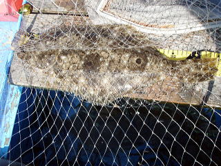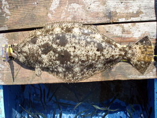 サイズを測ってみると・・・惜しい!!! 60cmまであと4cmの56cmのヒラメでした。