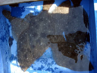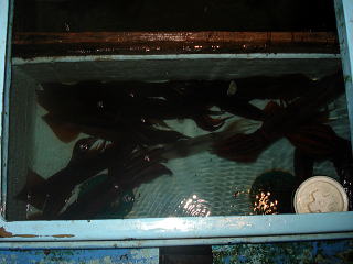 イケスを確認すると・・・あれっ、イワシがぜんぜん無いよ〜。