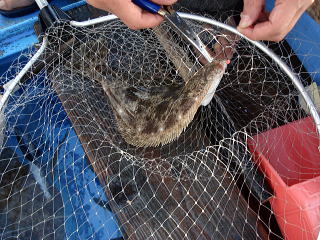 水面に見えてきたのは、41cmのヒラメでした。