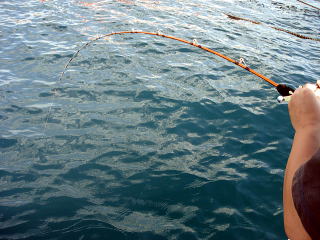 底に潜ろうとするので、イワシのときより50cmほどタナを上げます。