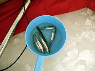 活きていればイケスに30匹ほどのイワシが残っているはずでしたが、残念ながらイワシは全て昇天しており、予備に持ってきた三角バケを使うことにしました。