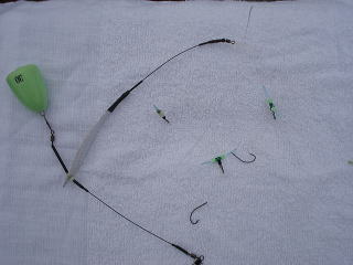 目玉バケ仕掛けもあったのですが、深い場所もやってみたいと思い、500gの三角バケを使ってみました。