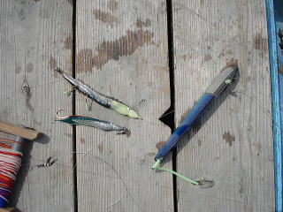 午前9時〜午後1時まで冷凍イワシを何回か交換しながら、4時間ぶっとおしでシャクリ続けました。