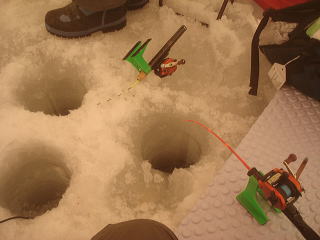 私は、去年オフシーズンに買った、がまかつの銀庵とシマノのワカサギスペシャルの組み合わせ、息子は氷点のSとシマノのワカサギスペシャルと言う組み合わせで、ワカサギ釣りでは、かみさんには内緒で、かなり無理したタックルをそろえました。