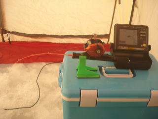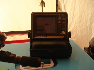 穴を何箇所かほって魚探で探しているうちに、私の魚探は寒さでバッテリー上がりしてしまいましたが・・・。