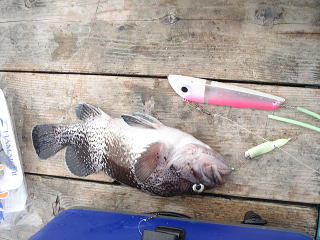 この辺りを適当に流していけば何か釣れるでしょう・・・ということで、私は210gのメタルジグでシャクリ、Kさんはメバル仕掛けに秘密のエサを何種類か付けて、しゃくっています。