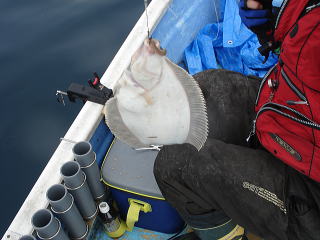 11時頃には、だんだん釣れなくなってきたので、少し浅い水深55mにもどってカレイ釣りに変更します。