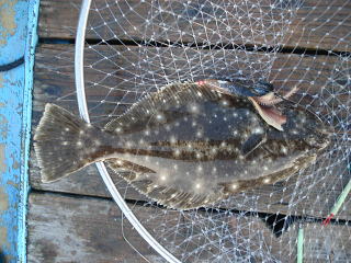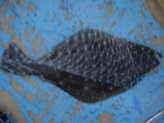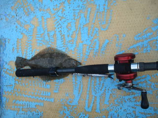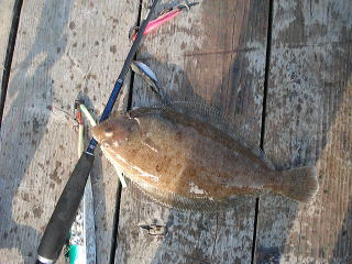 仕掛けを取り換えて気を取り直し、10分後すぐアタリがあったものの・・・あまり大きくないサイズ・・・35cmヒラメでした。