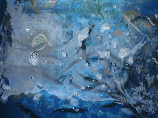 風が強くなって、波だってきたため、水深8mの浅場に移動しました。