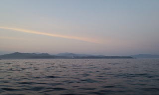 仕事が終わってから、まだ日が暮れるまで時間があったため、1時間ぐらいヒラメ釣りして、夕方6時30分からイカ釣りをしようと、急いで準備して沖へ出てみました。