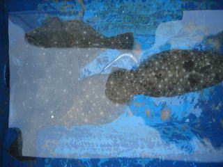 42cmのヒラメは、ほかの人にあげてしまったので2枚だけですが、ヒラメが釣れたことに満足したのか、イカ釣りをしないで帰ってきました。