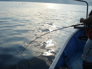 30分ぐらいするとアタリ・・・なんだか弱弱しい食いつきで、2分ぐらいしばらく、モサモサとしたアタリでなかなか、アワセのタイミングがわかりません。