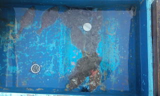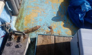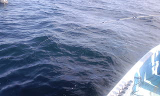 まずは目玉バケ仕掛けに冷凍イワシを付けて・・・沈めてすぐ、警察の船がまっすぐこちらに猛スピード?で向かってきます。