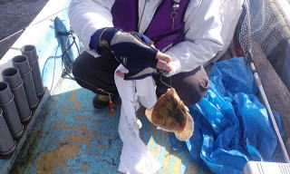 目玉バケと冷凍イワシで狙う魚はタラで、運が良ければヒラメっていうところですね。