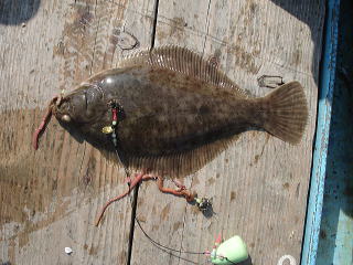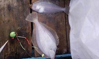 釣れてきたのは肉厚なマコガレイで30cmほどありました。