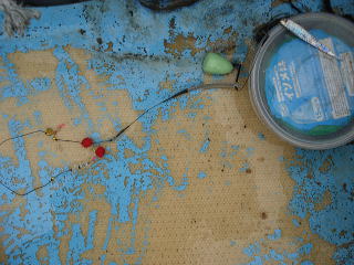 今日もめずらしく波高1mのナギで天気予報では風も2mぐらいと言っていたので、迷わず目玉バケ仕掛けとカレイ仕掛けを持っての釣行です。