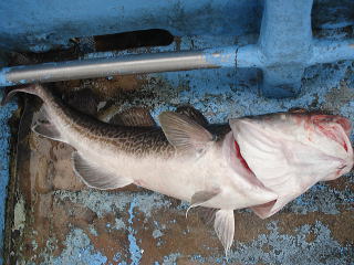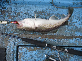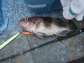 あまり引きがないのですが、巻きとる途中で何度か引きがあったので、タラと思われます。