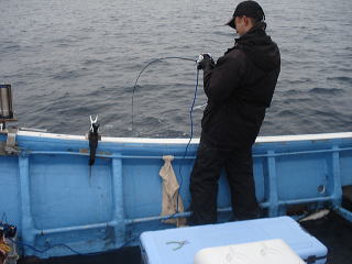 「こうやって、こうやるんだよ。」「ふむ、ふむ、なるほど、青物とは違うシャクリなんですね。」