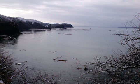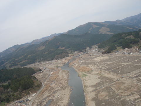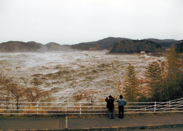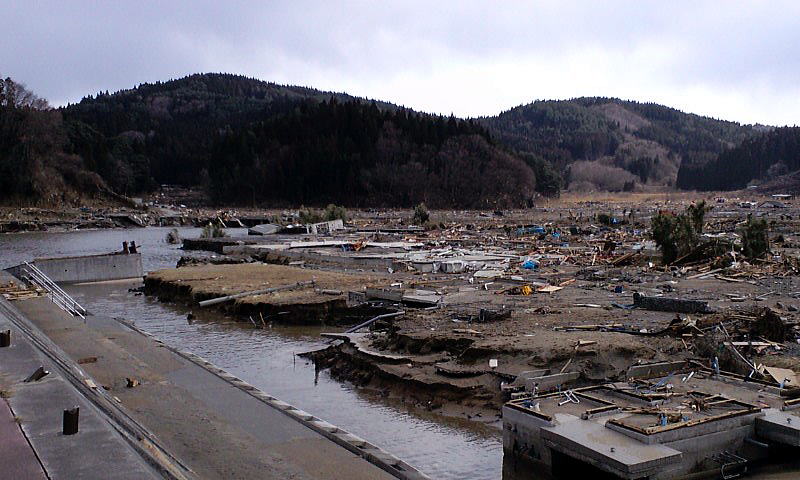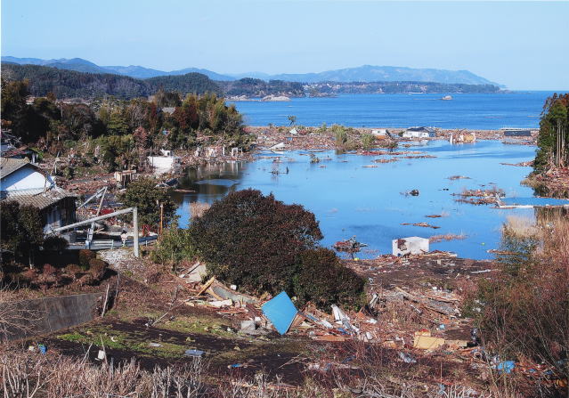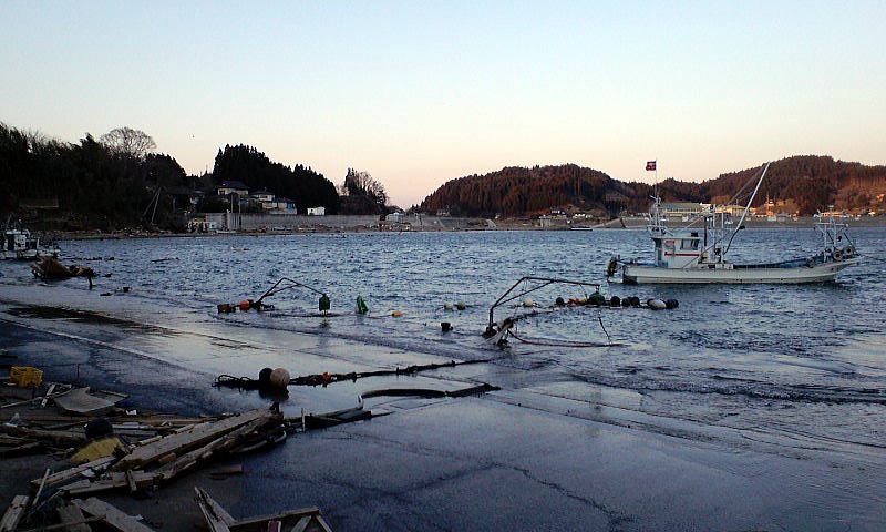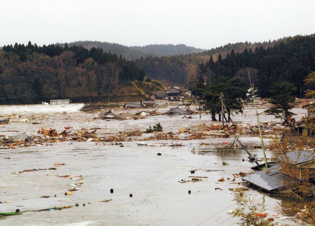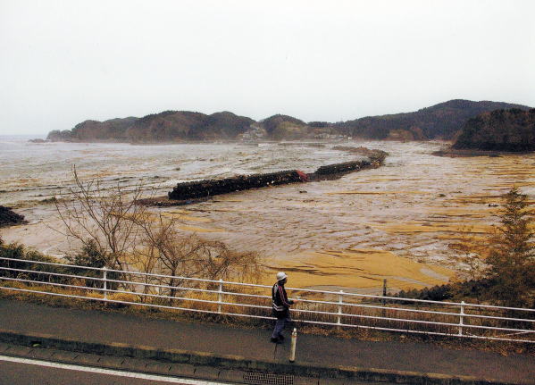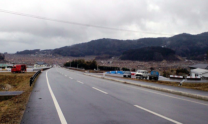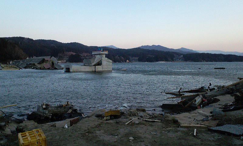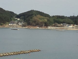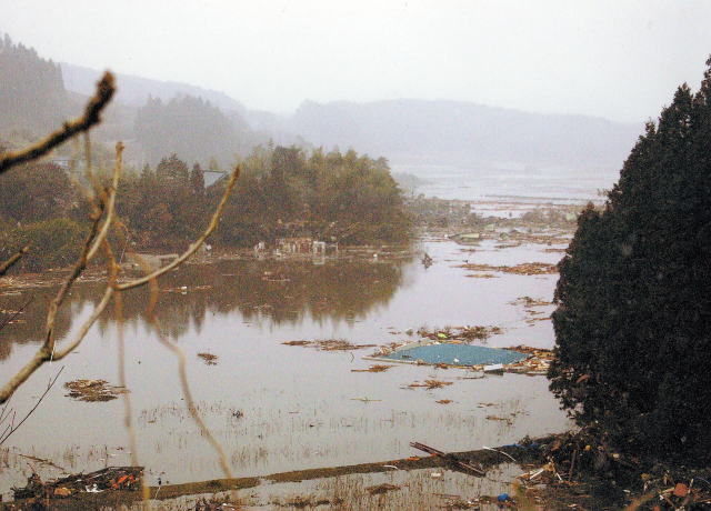 大野地区が防波堤で、せき止められて湖になってしまいました。